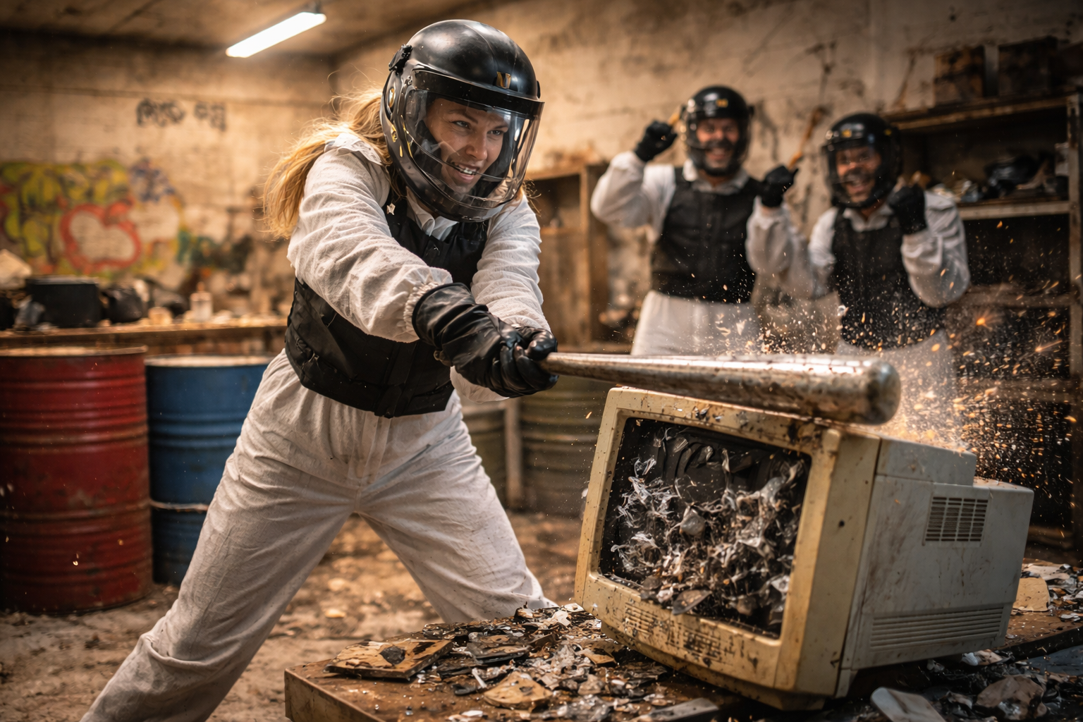 Libera estrés destrozando objetos en una sala privada equipada con total seguridad.